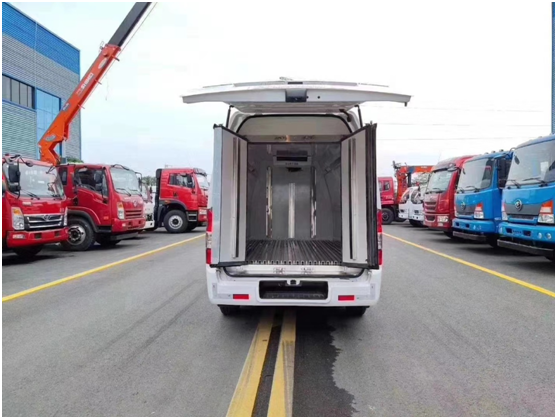 二、廂體配置:采用我公司液壓吸附一體成型生產(chǎn)線制造,保溫性能達(dá)到****標(biāo)準(zhǔn),單排廂體內(nèi)部尺寸為:3030*1615*1500(mm)容積為5.6立方,廂體內(nèi)外面料采用**新款納米玻璃鋼(不吸光、隔熱性好、硬度強(qiáng)、抗氧化),廂體厚度為8cm,內(nèi)襯骨架為防銹處理武鋼優(yōu)質(zhì)輕鋼型材,保溫材料為無空隙填充聚氨酯發(fā)泡,廂體底部為鋁合金花紋板或選平面納米玻璃鋼,廂體采用鍍鋅不銹鋼包角,加厚型鋁合金包邊,后門框為不銹鋼,加厚型不銹鋼后門合頁及鎖件,廂體內(nèi)部采用LED照明燈及廂體示寬燈。